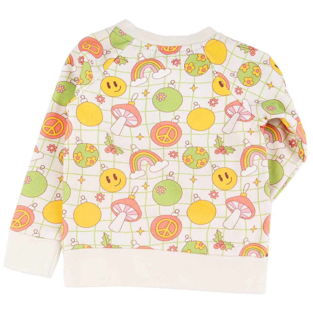 Bring holiday cheer to your little one's wardrobe with the Bailey long sleeve pullover, crafted from super soft brushed French Terry. Featuring a vibrant Holidaze groovy Christmas ornament print, this pullover combines comfort with festive fun. The long sleeves provide warmth, making it perfect for chilly days, while the relaxed fit allows for easy movement whether they're playing indoors or enjoying outdoor festivities.
