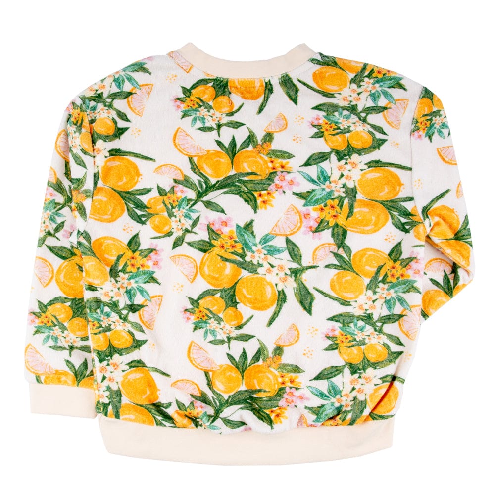 Infuse her wardrobe with tropical vibes and ultimate comfort with this girls' loop terry slouch pullover. Featuring an all-over Tropicana print, this pullover brings a playful, sunny touch to any outfit. Made from soft loop terry fabric, it offers a cozy, relaxed fit perfect for layering or lounging. The long sleeves and slouchy design add to its laid-back style, making it an ideal choice for both casual days and cooler evenings. Easy to pair with jeans or leggings, this pullover is a fun and versatile addition to her collection.